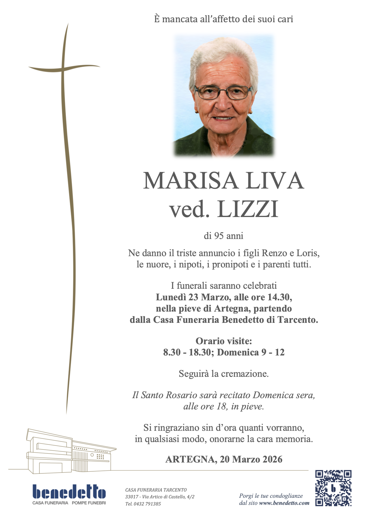 Lascia gratuitamente un messaggio di cordoglio, sarà nostra cura consegnarlo ai congiunti di MARISA LIVA.
