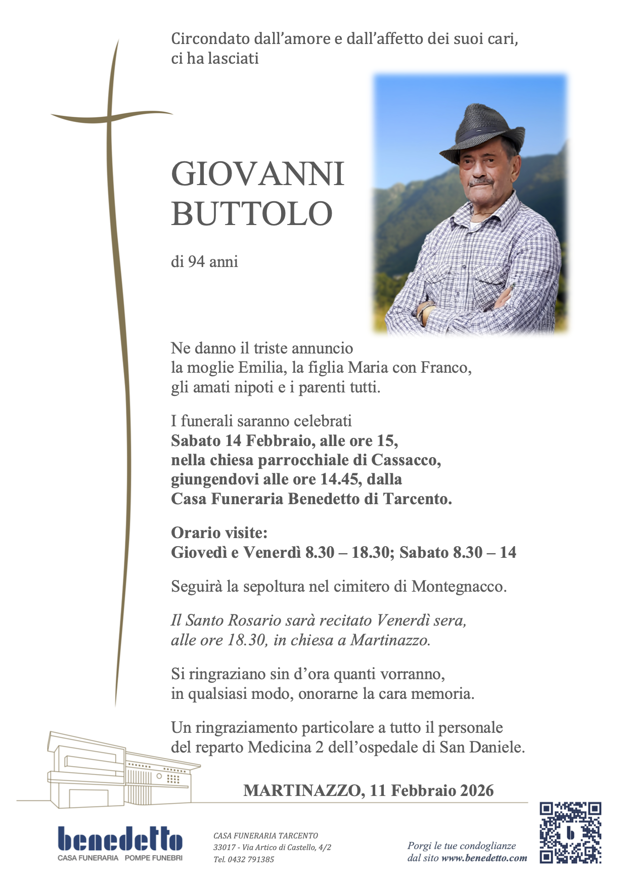 Lascia gratuitamente un messaggio di cordoglio, sarà nostra cura consegnarlo ai congiunti di GIOVANNI BUTTOLO.