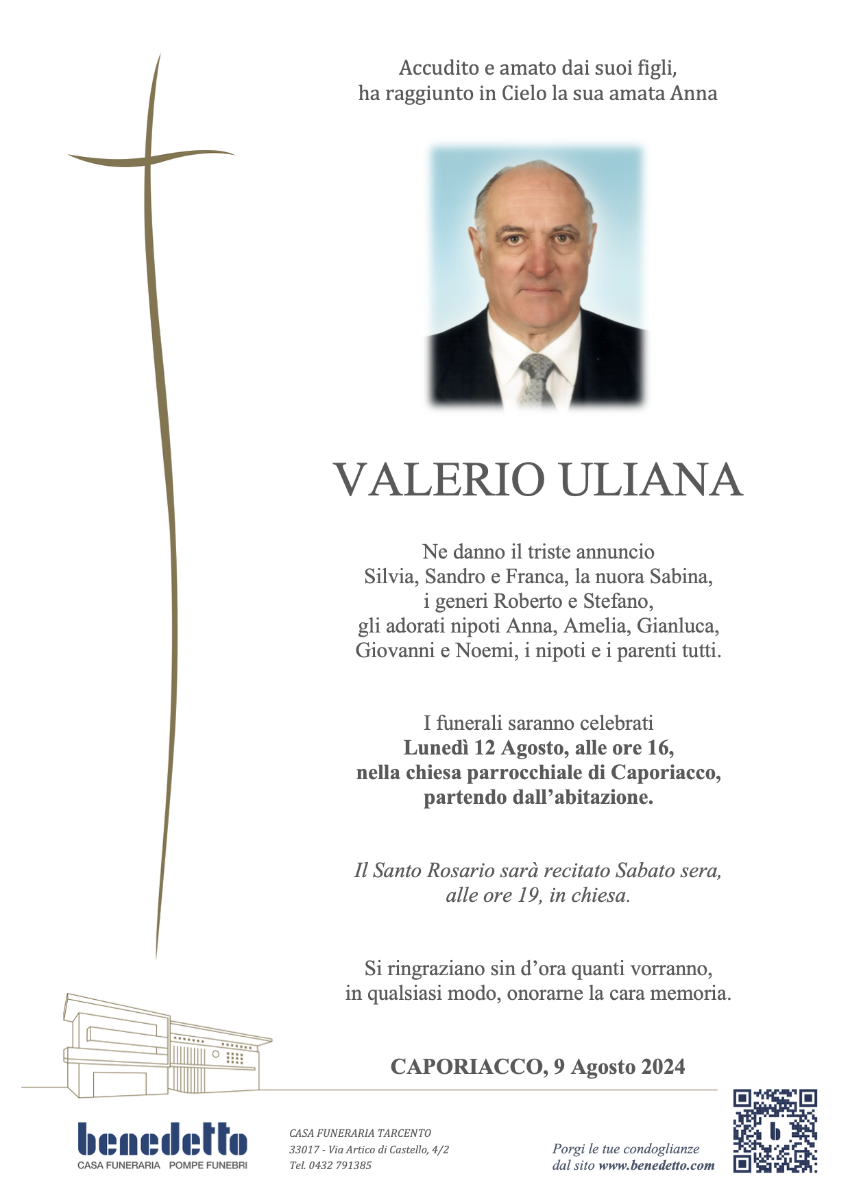 Lascia gratuitamente un messaggio di cordoglio, sarà nostra cura consegnarlo ai congiunti di VALERIO ULIANA.