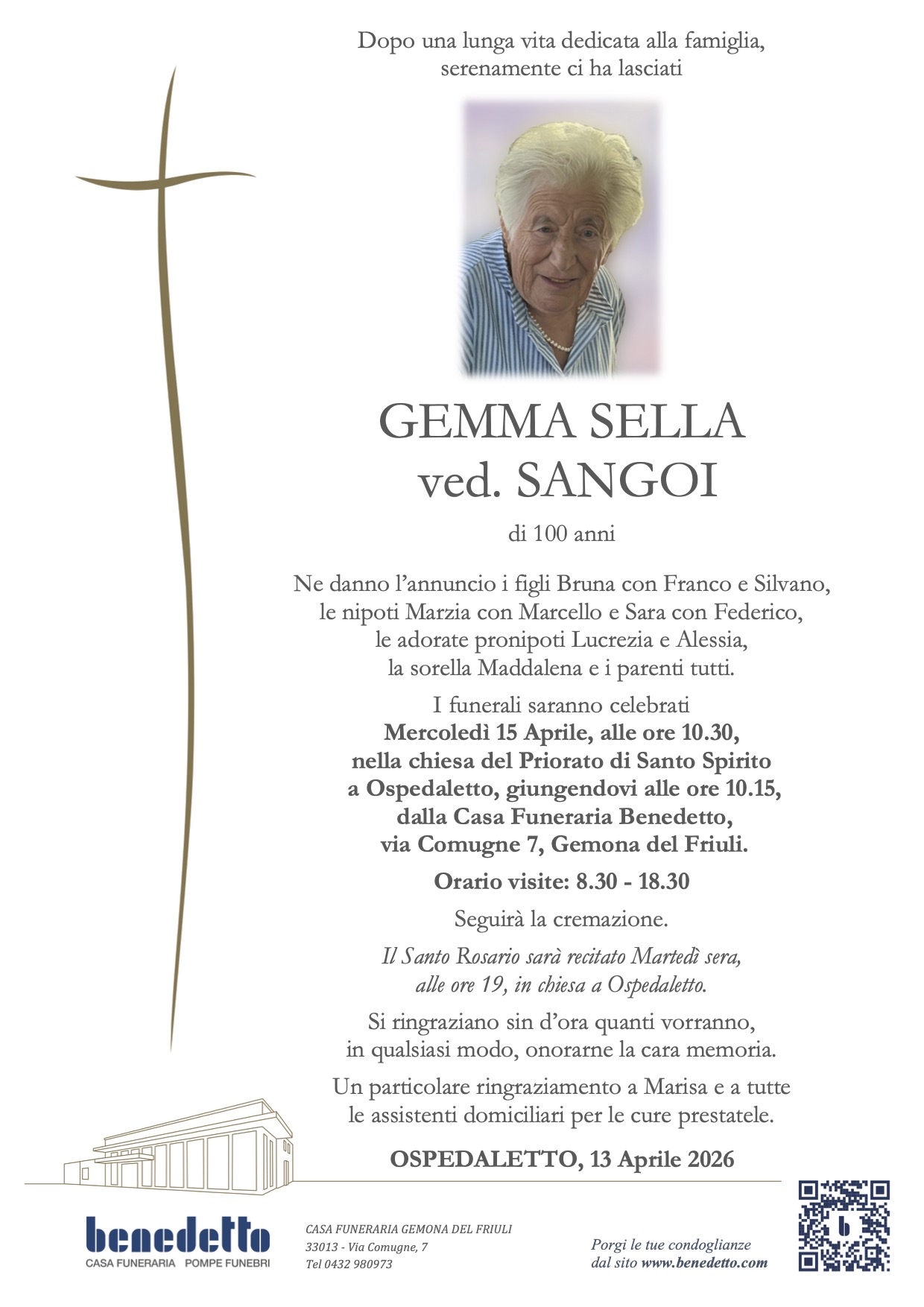 Lascia gratuitamente un messaggio di cordoglio, sarà nostra cura consegnarlo ai congiunti di GEMMA SELLA.