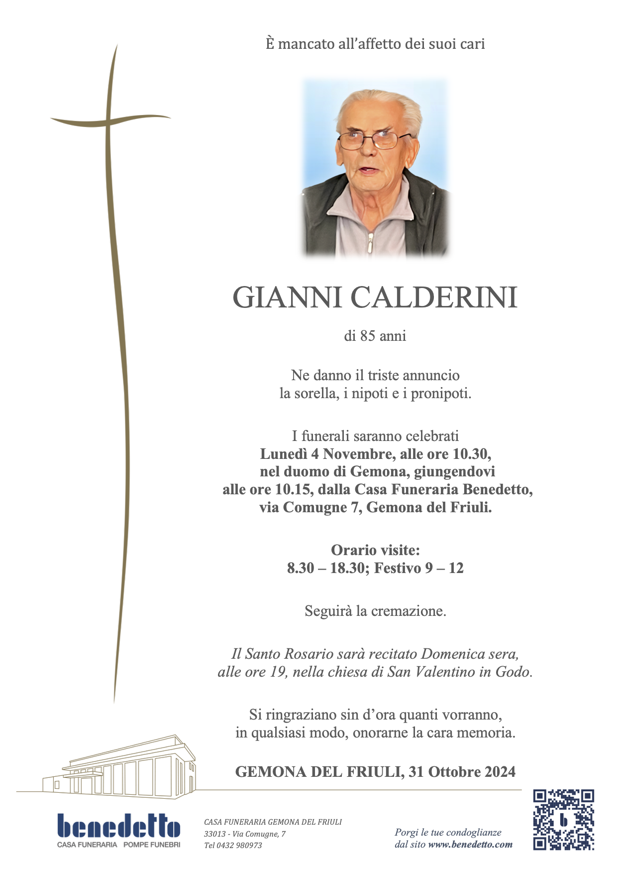 Lascia gratuitamente un messaggio di cordoglio, sarà nostra cura consegnarlo ai congiunti di GIANNI CALDERINI.