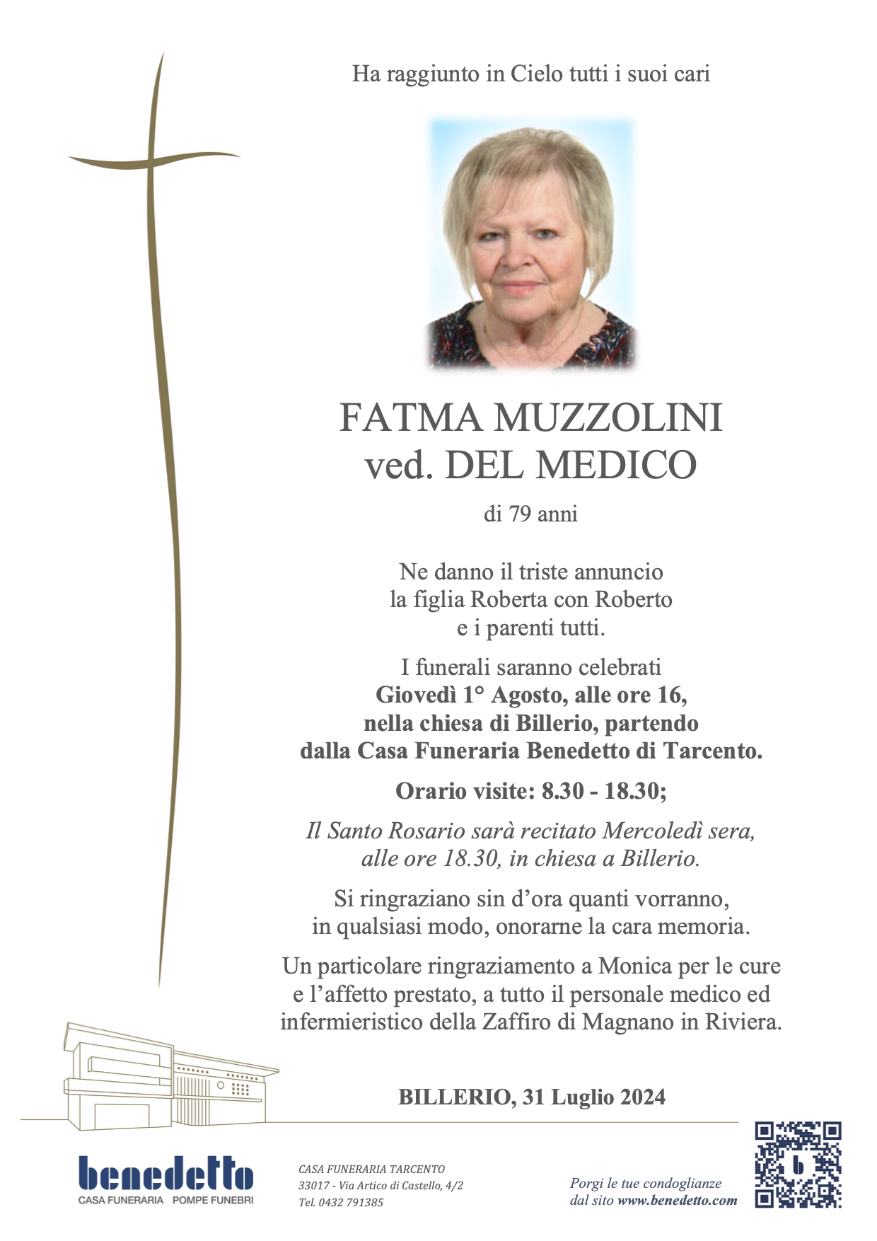 Lascia gratuitamente un messaggio di cordoglio, sarà nostra cura consegnarlo ai congiunti di FATMA MUZZOLINI.