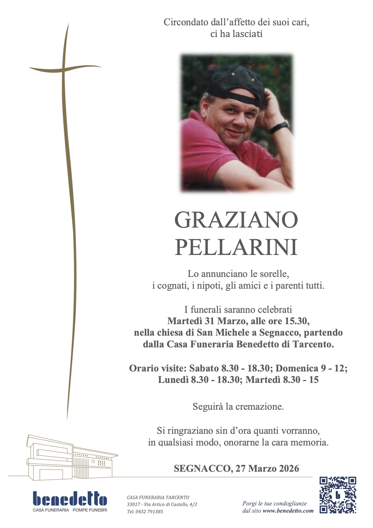 Lascia gratuitamente un messaggio di cordoglio, sarà nostra cura consegnarlo ai congiunti di GRAZIANO PELLARINI.