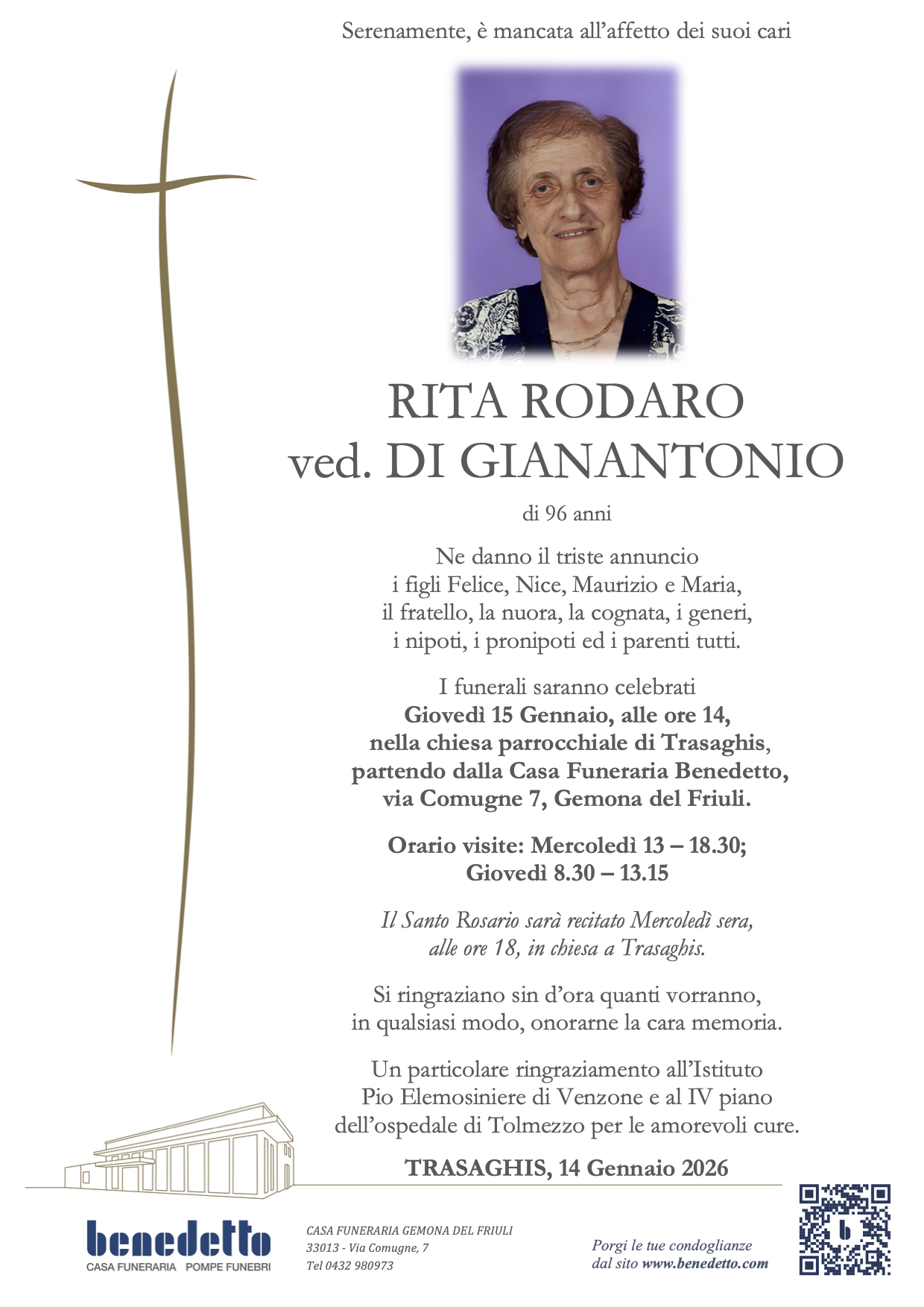 Lascia gratuitamente un messaggio di cordoglio, sarà nostra cura consegnarlo ai congiunti di RITA RODARO.