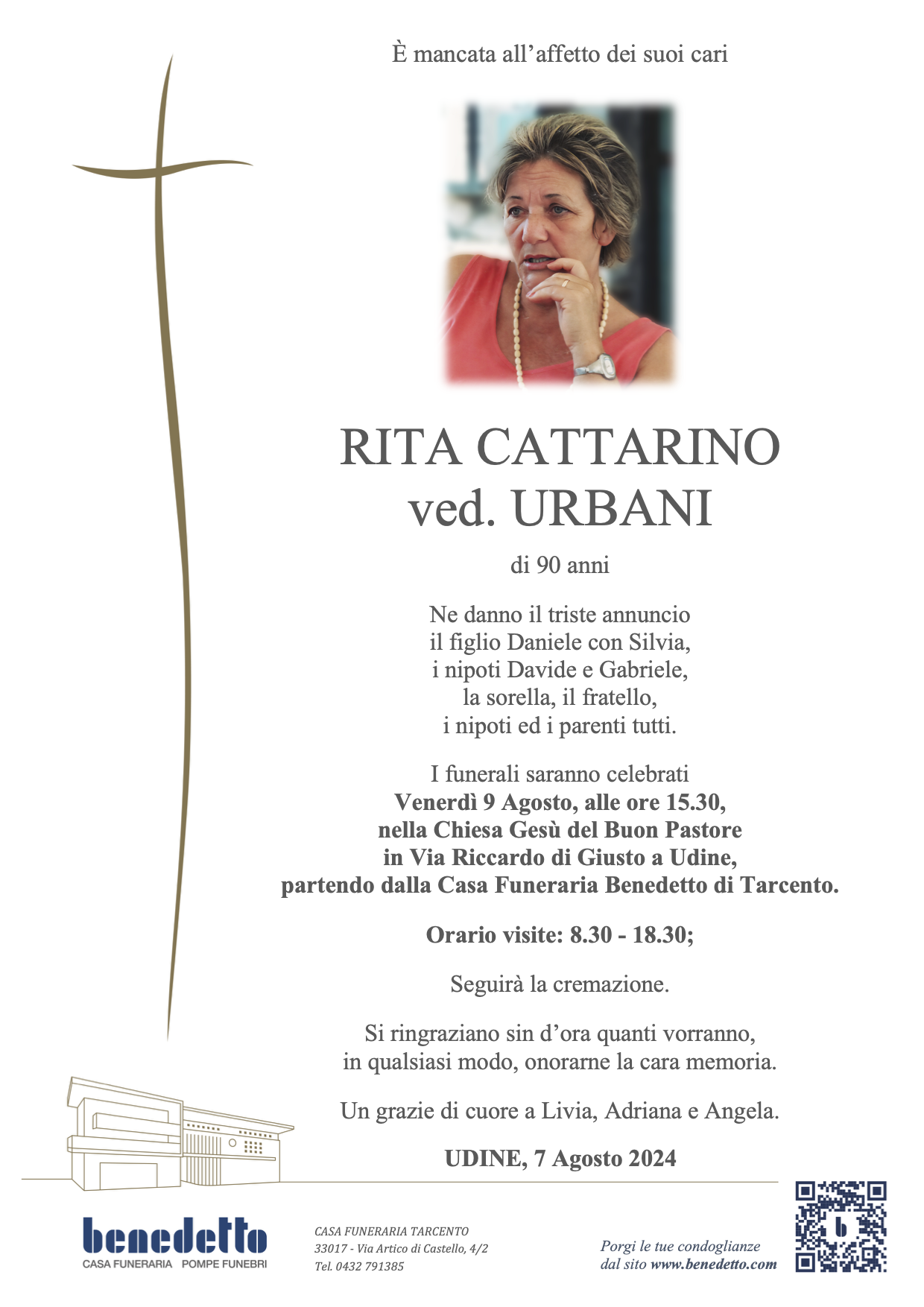 Lascia gratuitamente un messaggio di cordoglio, sarà nostra cura consegnarlo ai congiunti di RITA CATTARINO.